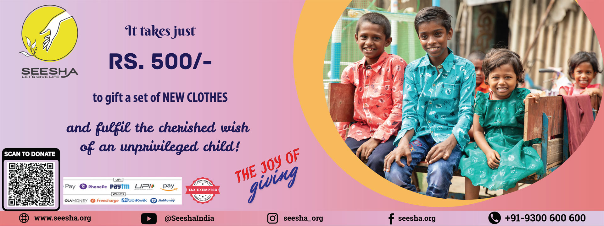 As we continue making a difference in the lives of the deprived children through the distribution of new clothes across India, you too can join us in this noble mission.