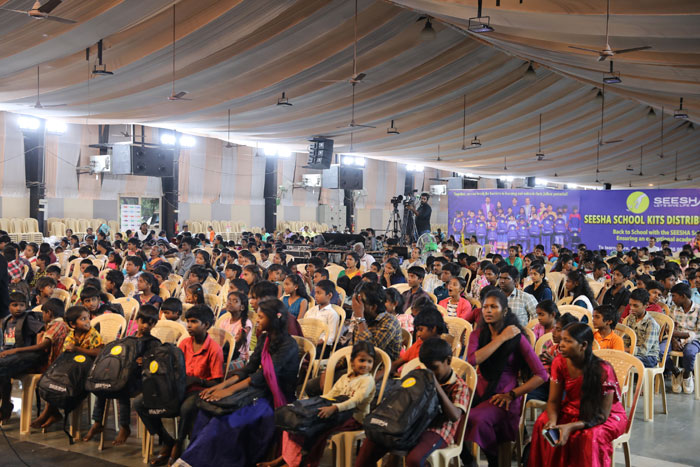 The inaugural distribution of SEESHA's annual school kits, supporting 15,000 underprivileged students, was held at Vanagaram, Chennai, on July 26, 2025.